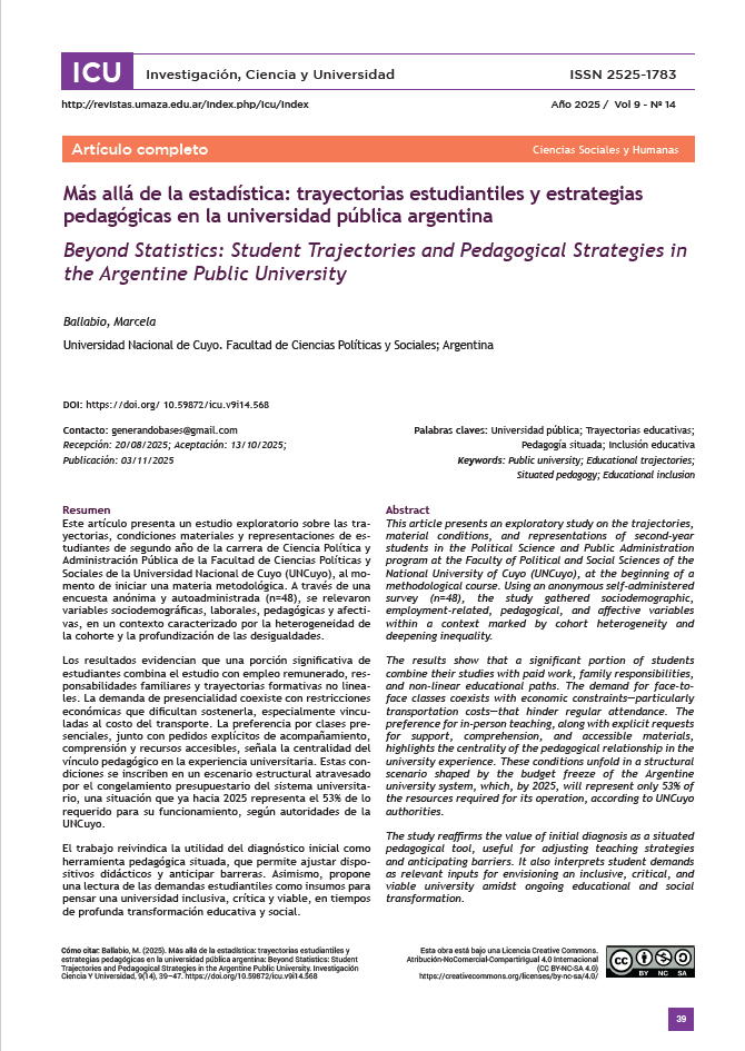 ICU es la Revista Científica de la Universidad Juan Agustín Maza, de carácter multi e interdisciplinario, de Acceso Abierto y sin costos de publicación ni lectura.